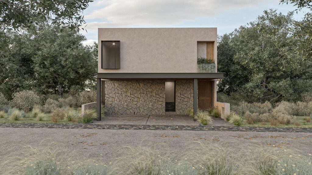 Desde su fachada, revela un lenguaje arquitectónico contemporáneo, equilibrado y sobrio. El juego de volúmenes crea una composición sólida pero amable, en la que la textura de los materiales y la proporción de las aperturas definen una estética contenida. Una vivienda que proyecta elegancia sin ostentación.