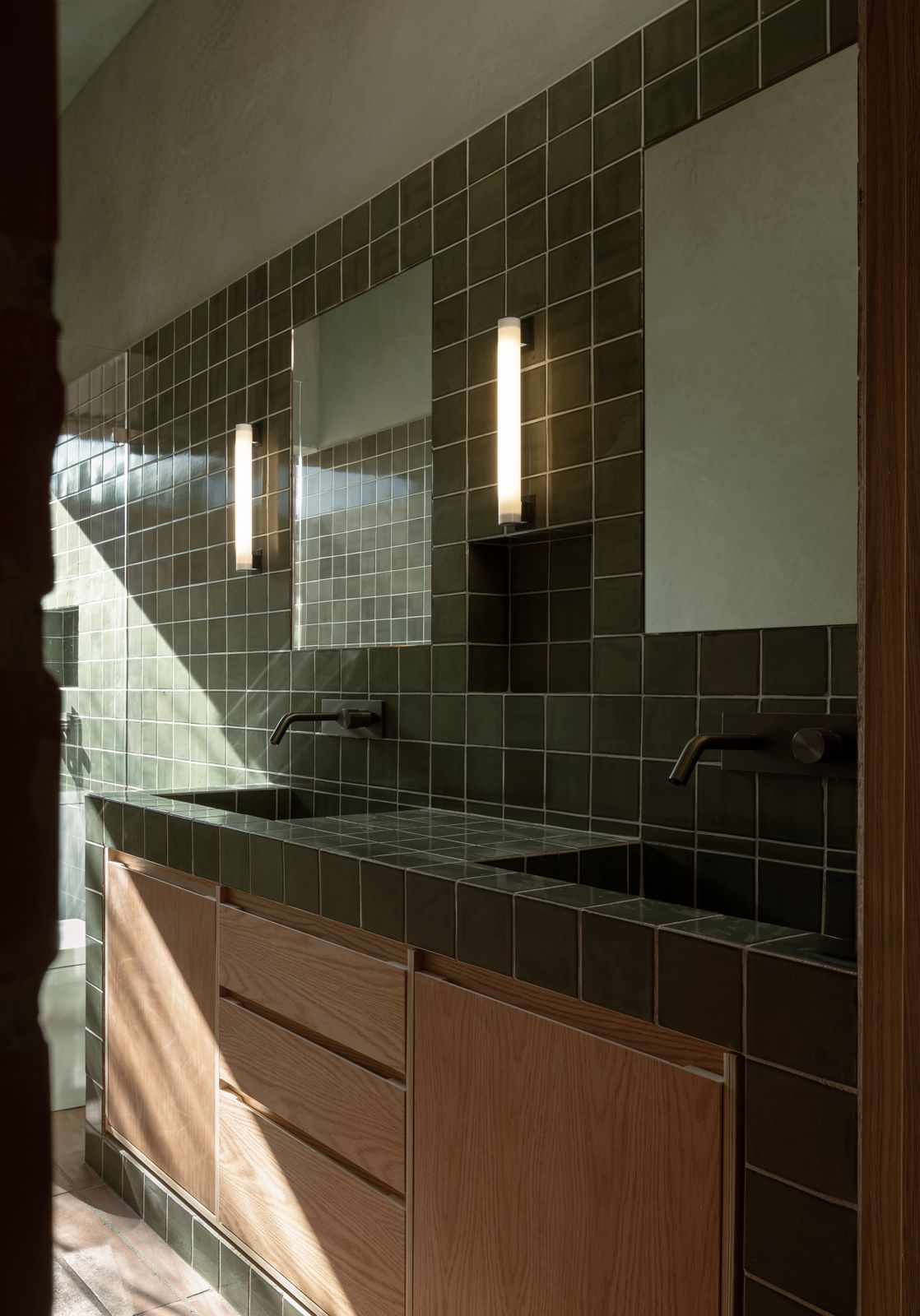 Un segundo cuerpo concentra las habitaciones, con vistas filtradas por patios y vegetación. La luz entra medida, nunca directa y agresiva. Es la parte más silenciosa de la casa, pensada para descansar, leer, detener el día.