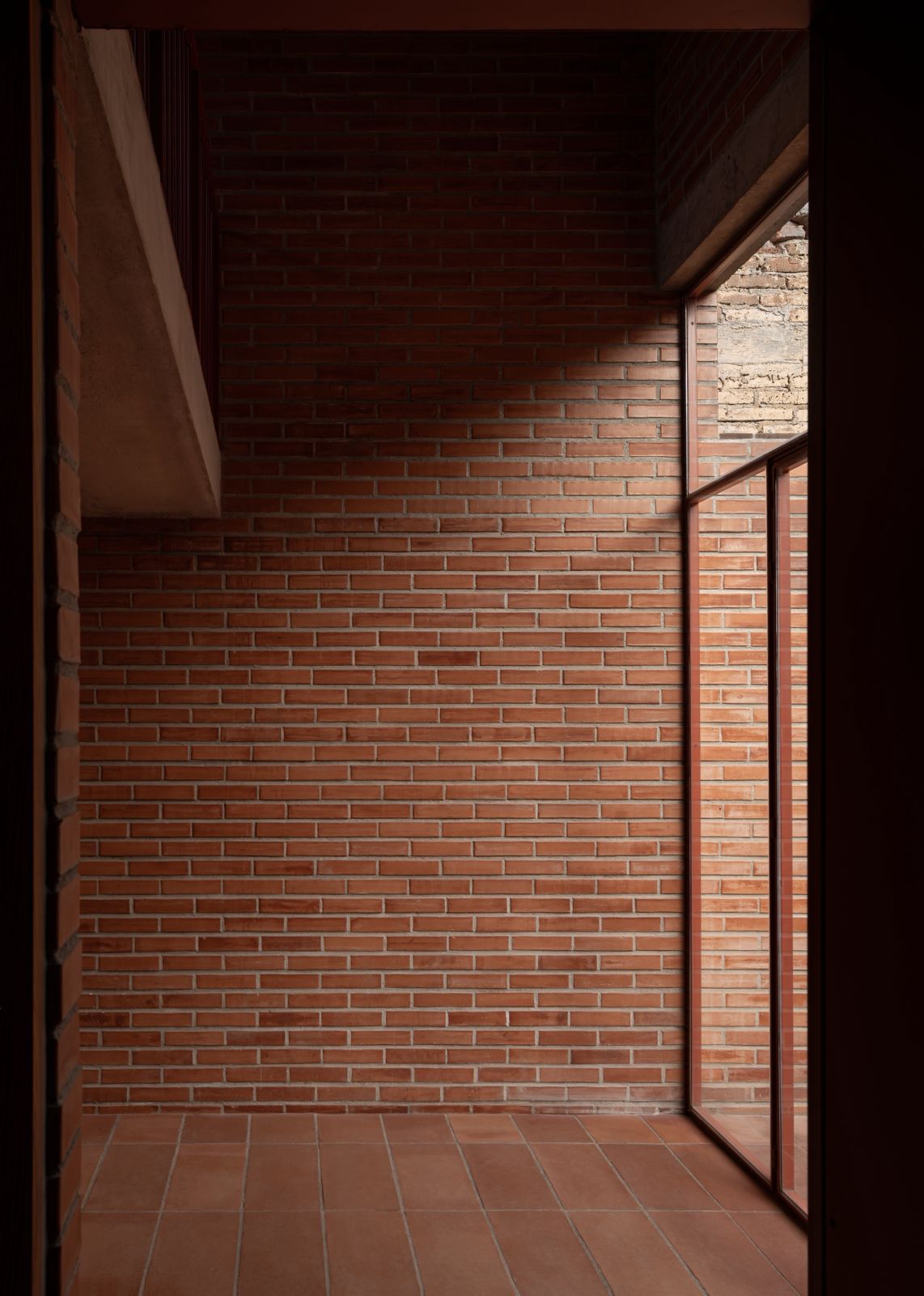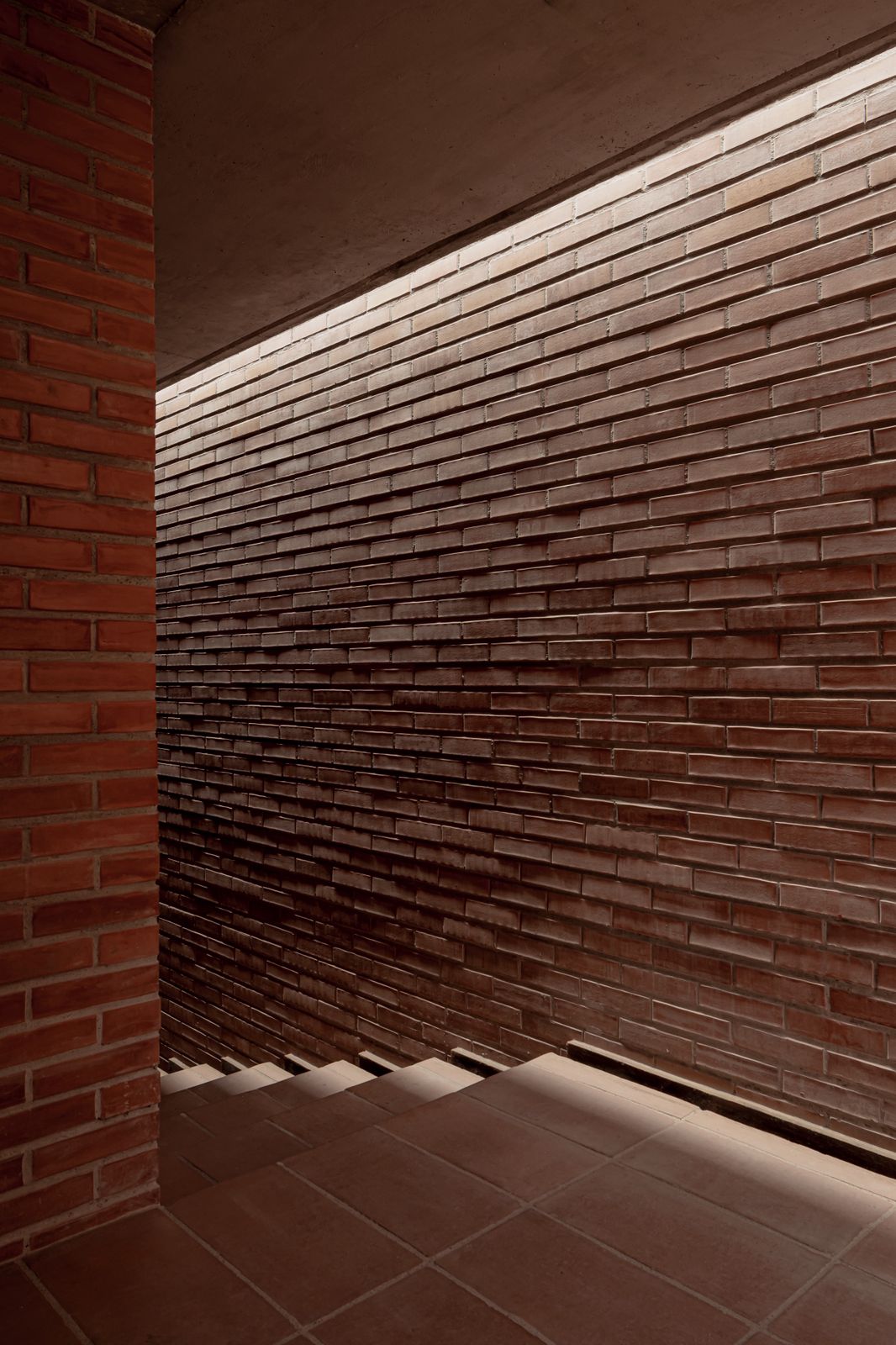 La casa no se lee como un objeto aislado, sino como una secuencia de volúmenes conectados por patios, umbrales y escaleras. El ladrillo, la luz y los árboles son el hilo conductor.