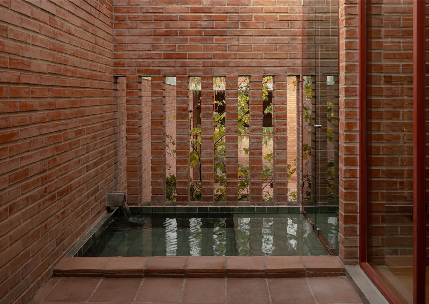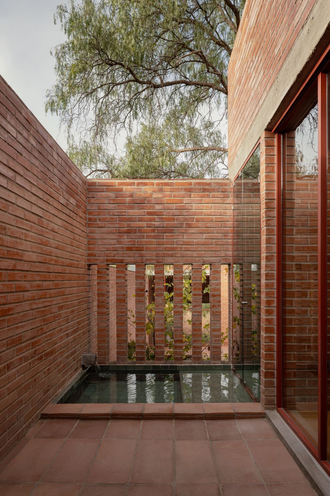 Entre cada uno de estos cuerpos no hay pasillos convencionales, sino patios, terrazas y escalinatas. Se pasa del sol a la sombra, del ladrillo al follaje, del sonido del agua al silencio del interior. Es una casa que se recorre, no sólo se transita.