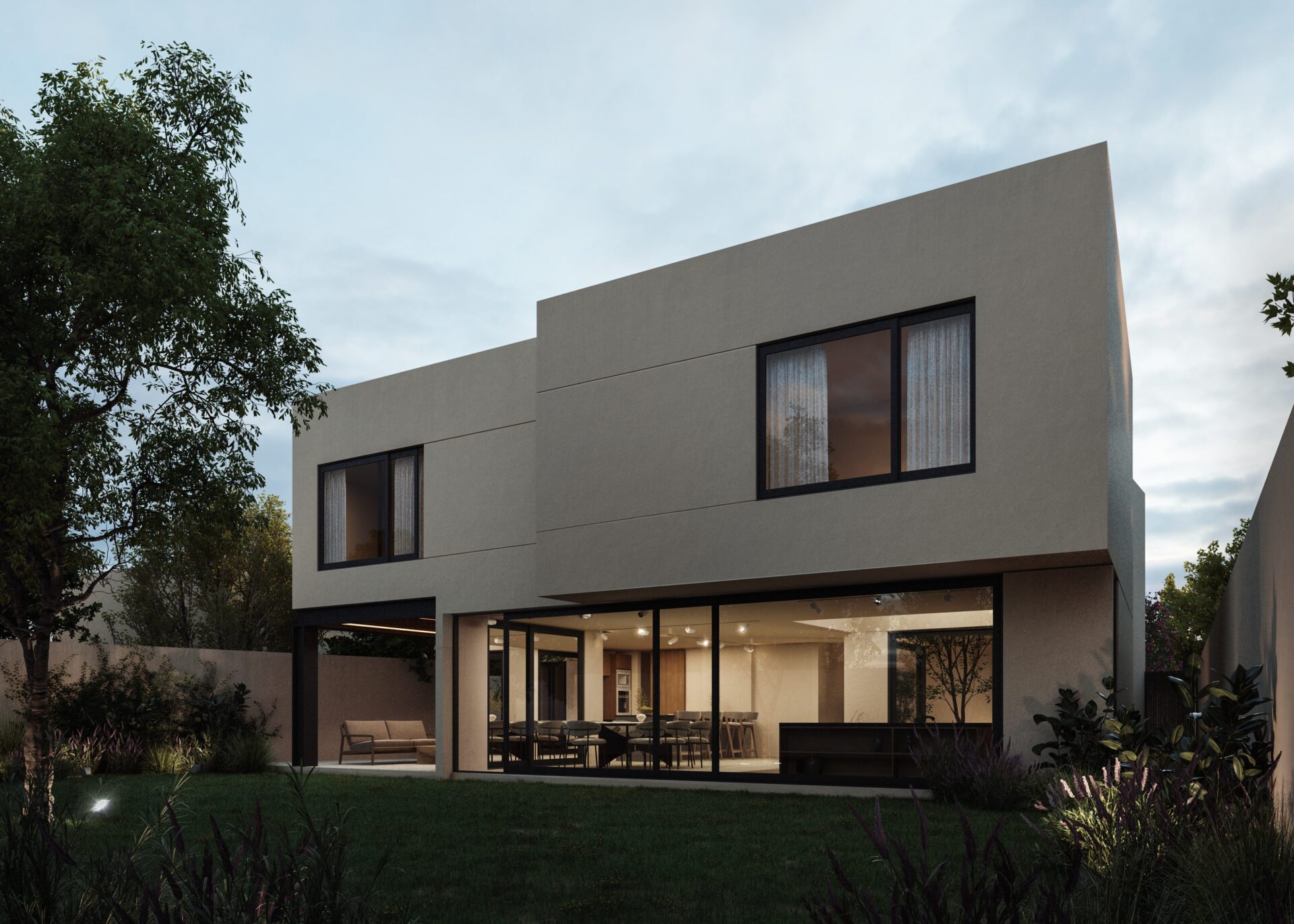 En el poniente de Querétaro, dentro de La Espiga, Casa Roqueño se plantea como una vivienda contemporánea que observa con atención su contexto: un frente hacia área verde, la luz amplia del Bajío y un tejido urbano que privilegia andadores, río central y vida peatonal. La casa no busca imponerse; se integra a partir de volúmenes sobrios, una paleta cálida y una relación directa entre interior, jardín y cielo.
